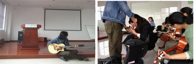 9月初,公司针对中层管理人员开设了吉他培训的课程,受到了各部门同事的积极响应。 课堂上轻松、愉悦的氛围感染着在座的每个人。尽管练琴比较辛苦,手指会疼痛,会脱皮起茧,可每个人都用心坚持了下来,每当音符流淌出来的时候,大家的脸上露出的都是灿烂的笑容。在过程中,我们深深感受到音乐所带来的快乐,同时也深深领悟到公司enjoy work enjoy life这种理念积极的引领着我们。 其实,无论工作还是生活都是相通的,就如这弹吉他一样,要积极的面对困难, 坚持做好每个小细节,才能真正感受到这过程中的快乐,才能真正享受到生活,享受到工作。
